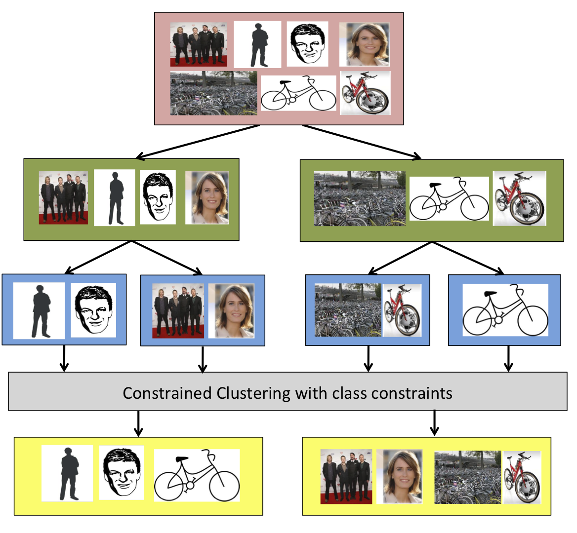 We learn to separate large heterogeneous data sources into multiple latent visual domains and show that using this learned clustering improves classification performance.
