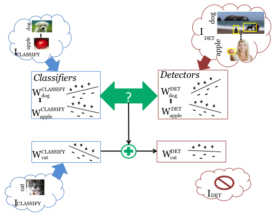 Released >7.5K detector! We present a method to transform classifiers into detectors by transferring knowledge from known detector categories.